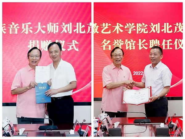9月22日上午,“刘氏三杰”刘北茂之子、著名小提琴演奏家、中央音乐学院教授刘育熙携夫人邓克老师一行访问我校,参加刘北茂艺术馆(筹)物品捐赠仪式系列活动。校党委书记周明洁,党委副书记、校长樊嘉禄出席活动。