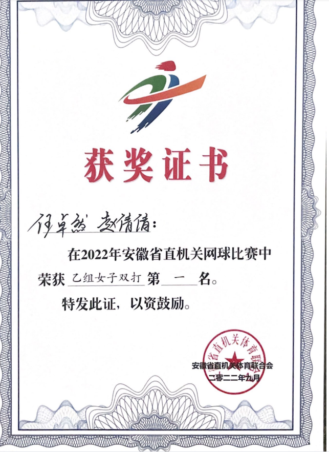 赵倩倩与同组队员历经小组赛和淘汰赛的激烈角逐,顺利晋级决赛。决赛中,赵倩倩以精湛的球技、团结协作的精神,展示了学校青年教师赛出水平、比出风格的形象,最终获得本届省直机关网球比赛女子乙组双打冠军。