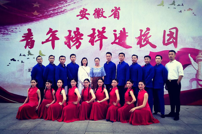 6月14日晚,由我校选送的舞蹈《黄河》在合肥学院体育馆参加了“青春心向党 建功新时代”青年榜样进校园首场演出。此次活动由安徽省委宣传部、团省委、省委教育工委联合主办,合肥市委宣传部、团合肥市委、合肥学院承办。舞蹈《黄河》也是整场演出中唯一一个舞蹈节目。