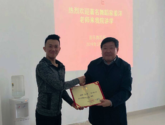 3月15日、16日,国际知名编舞家、法国国家歌剧院里昂芭蕾舞团首席、文化部“海外高层次文化人才”引进人员、“国家艺术基金”特邀教授姜洋来我院开展了为期两天的实践交流。姜洋客座教授受聘仪式在舞蹈楼四楼会议室举行,学院党委书记、校长周之虎亲切接见姜洋,颁发证书,并向他介绍了我院申报设置10BET十博网页版的相关情况。周之虎指出,在申报设置的关键时刻,能够邀请到出色的舞蹈家前来,给学校增添了生机,更鼓舞了士气。学校人事处、音乐舞蹈系负责人及部分教师代表出席受聘仪式。